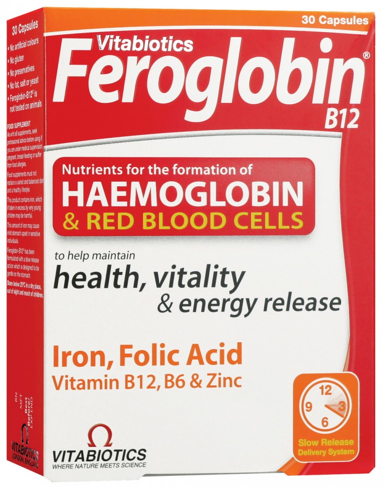 Lai novērstu pārmērīgu dzelzs izdalīšanos kuņģī, Feroglobin® B12 ilgstošās darbības kapsulā ir izstrādāta speciāla lēnas izdalīšanās sistēma. Tas garantē, ka asinīs nepieciešamās uzturvielas izdalīsies lēni un vienmērīgi.