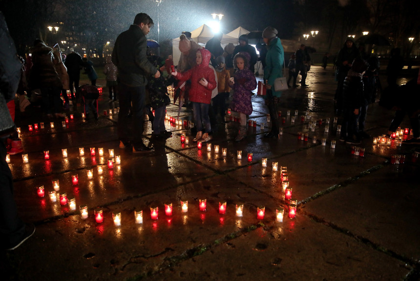 VAS “Elektroniskie sakari” īstenotās unikālās akcijas “Apsveikums Latvijai” ietvaros bērni ar vēstnešiem iededza svecītes ar īpašiem vēstījumiem Latvijai tās dzimšanas dienā.