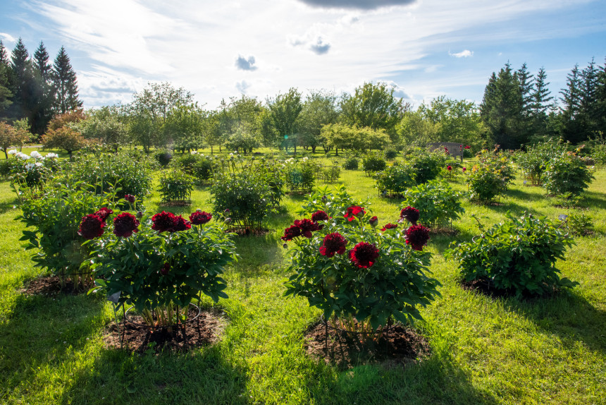Arborētumā skatāmas 400 dažādas peoniju šķirnes, un, kā stāsta dendroloģe Inguna Spaile, vēsais un mitrais laiks ziedēšanu paildzinājis. Tomēr lietavas sagādājušas arī problēmas - peonijām bojājas gan saknes, gan lapas, turklāt dažkārt sapūst pat vēl neatvērušies pumpuri. Daļa augu šogad ziedus nemaz nav izplaukuši.