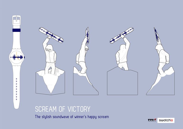 Šveices pulksteņu ražotājs "Swatch" rīko pasaules čempionātu snovbordā "TTR World Snowboard Tour", un konkursa dalībniekiem bija jāizstrādā dizains čempiona trofejai un pulksteņa modelim. Tagad latviešu mākslinieces ideja "Scream of Victory" ("Uzvaras kliedziens") rotās "Swatch" pulksteņus un ar snovbordu saistītas lietas.