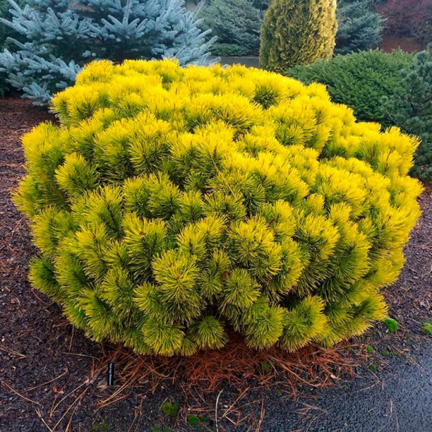 Tradicionāli ainavu speciālisti izvēlas divas šķirnes: pinus mugo Ophir un pinus mugo Winter Gold.