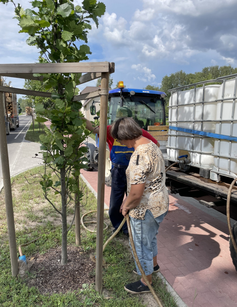 Šiem kokiem paredzēta īpaša aprūpe, kas ieplānota jau iestādīšanas brīdī pagājuša gada septembrī. Koki tiek laistīti ūdeni ievadot pie sakņu sistēmas esošā caurulē. To veic pašvaldības uzņēmuma - pilsētas labiekārtošanas iestādes - darbinieki.