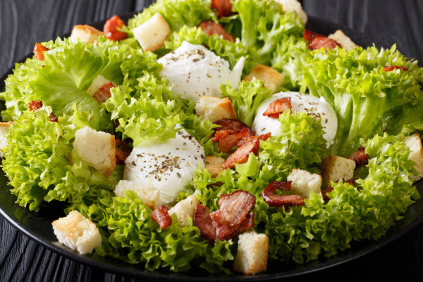 Ja patīk olu un etiķa garša, var arī apsvērt iespēju izmantot abas sastāvdaļas, lai pagatavotu gardus un barojošus brokastu salātus. Receptē ir paredzētas kreses, bet varat izmantot arī rukolu, romiešu salātus, aisberga salātus vai pat spinātus. Brokastīs var pagatavot satriecoši gardu franču ēdienu - Lionas salātus, kā jau liecina nosaukums, ko radījuši Lionas pavāri.