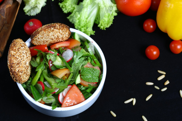 Piemērs: salāti ar burkāniem, papriku un spinātiem + daži lazdu rieksti vai sauja saulespuķu sēklu ļaus organismam labāk izmantot beta-karotīnu un citus vitamīnus.