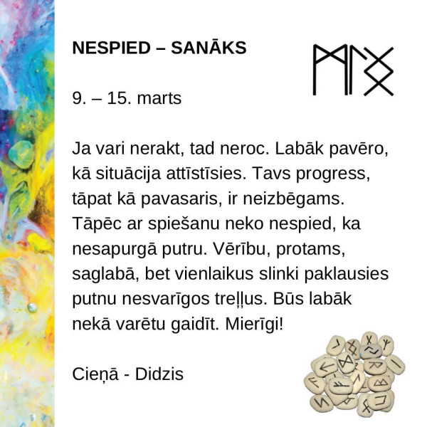 Ja vari nerakt, tad neroc. Labāk pavēro, kā situācija attīstīsies. Tavs progress, tāpat kā pavasaris, ir neizbēgams.