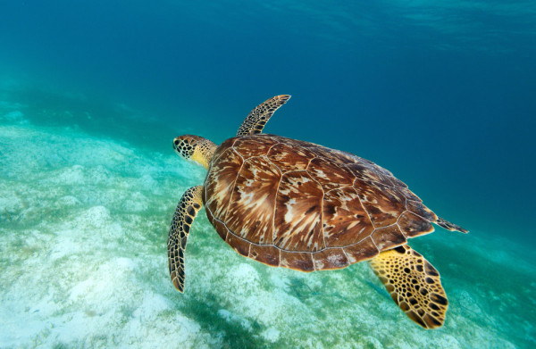 Kritiski apdraudēts ir arī knābjainais jūras bruņurupucis. Patlaban pasaulē tādi palikuši mazāk nekā 25 tūkstoši, un to skaits turpina sarukt. Tā ir viena no vizuāli izteiksmīgākajām jūras bruņurupuču sugām, ar unikālu knābi. Pieaudzis bruņurupucis ir aptuveni metru garš, ar lielām, spēcīgām pleznām, kas ļauj tam veikli pārvietoties starp koraļļu rifiem.