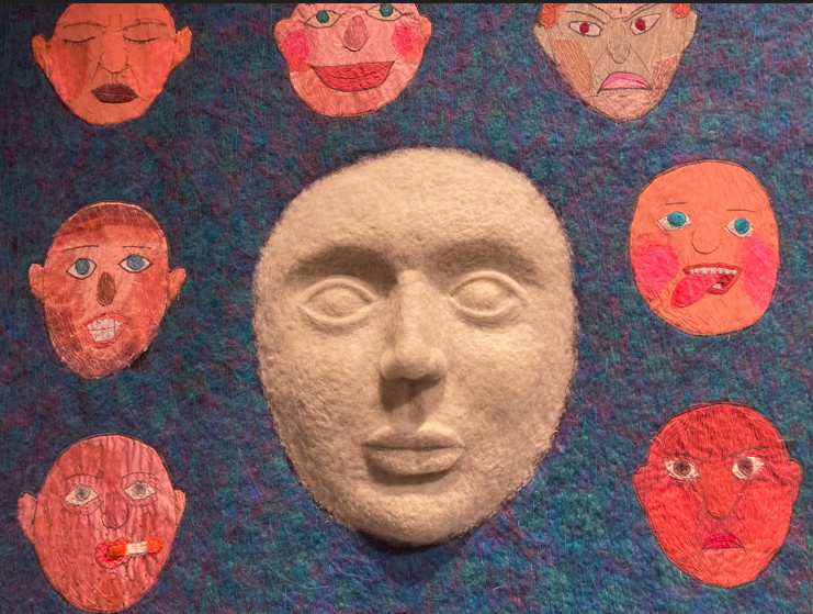 Izstādē netrūkst arī tradicionālo gobelēnu, bet ar netradicionālām tēmām. Rumāņu mākslinieces Gabrielas Kristu darbs “Mirkļa dienasgrāmata”.