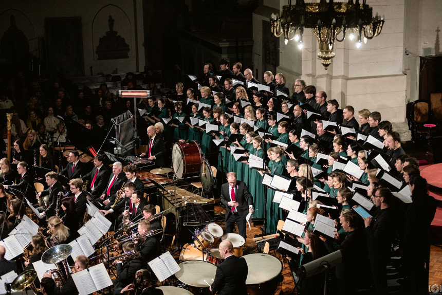 Klausītājiem būs iespēja dzirdēt Šmīdberga veidotu instrumentālu versiju Pētera Plakida kora dziesmai “In memoriam”, bet pirmatskaņojumā izskanēs instrumentācija Artura Maskata opusam “Lacrimosa”, kas tapis 1995. gadā korim, ērģelēm un stīgu orķestrim un veltīts prāmja “Estonia” bojā gājušo piemiņai. Šajā pārlikumā Maskata mūzika skanēs pūtēju orķestra un kora izpildījumā.