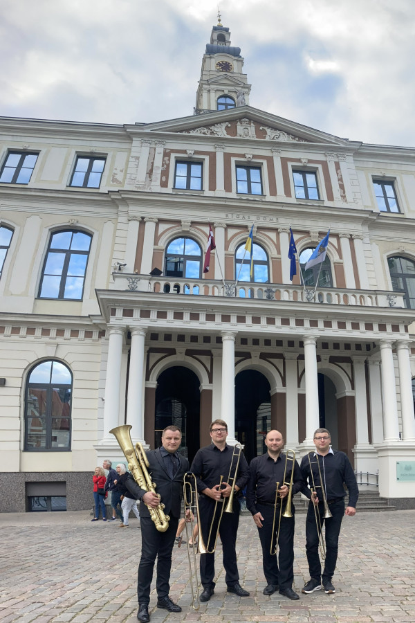 Rīgas Sakbutu Konsorts: Vairis Nartišs (basa sakbuts, tenora sakbuts), Kaspars Majors (tenora sakbuts), Artūrs Hrustaļovs (tenora sakbuts), Pēteris Vaickovskis (tenora sakbuts).