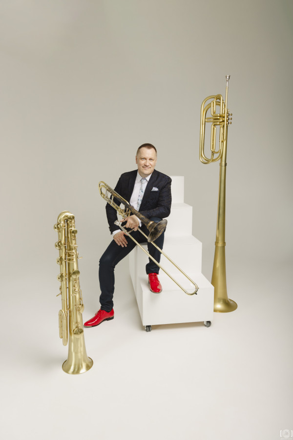Koncerta īpašais viesis - trombonists un pūšaminstrumentu izgudrotājs Vairis Nartišs (attēlā).