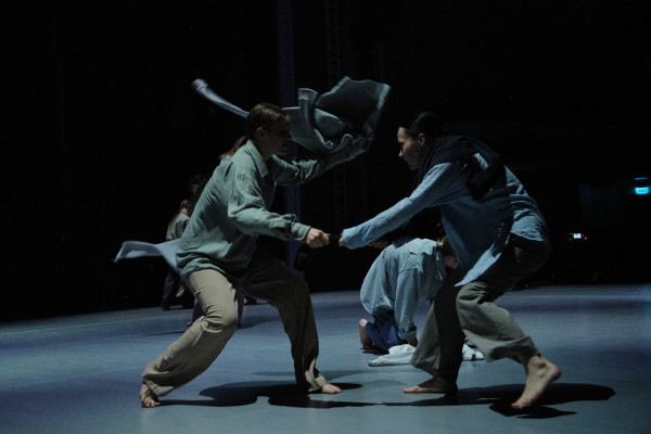 Divu dienu programmu svētdien noslēgs horeogrāfes Elīnas Gaitjukevičas izrāde “Ar acīm ciet”, kurā deju grupas “Ritms” dejotāji pēta bailes - ar kādām baiļu izjūtām mūsdienās saskaras jaunieši, kā viņi izprot šo baiļu cēloņus un mēģina ar tiem tikt galā?