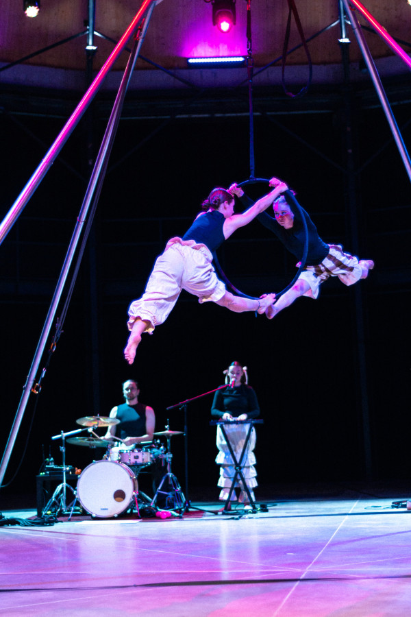 Izrāde “Aizbēgt līdzi cirkam” ieved skatītājus gan cirka disciplīnu krāsainajā pasaulē, gan parāda tā neredzamo pusi, kurā uzdrīkstēšanās un neatlaidība ir klātesoša katrā solī.