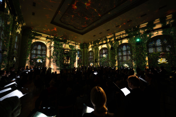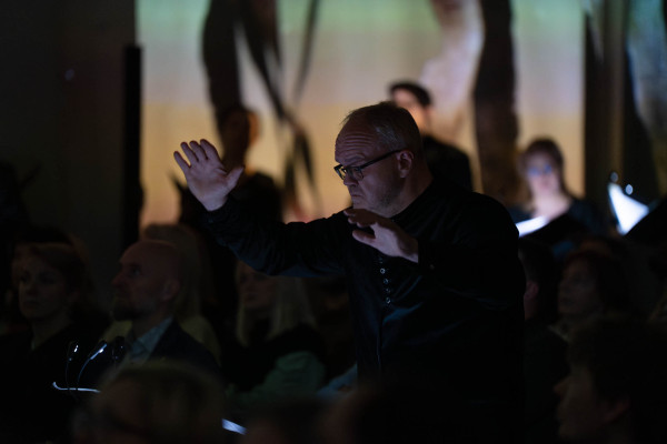 Vizuālais vēstījums, kora dziedājums diriģenta Māra Sirmā vadībā un Kaspara Zemīša ģitārspēle pavisam tuvu burtiski ieskaus “Interlude” publiku, radot īpašu, katram klausītājam veltītu klātbūtnes pieredzi.