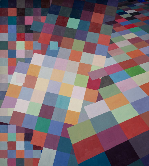 Viesturs Uzuleņš savā jaunākajā izstādē pēta attiecības starp algoritmisku domāšanu un glezniecību, savienojot digitālas struktūras un ar roku veidotus attēlus.