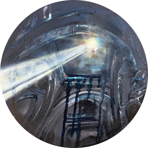“Jerdiks”, arm. երդիք/2026. Audekls, eļļa, autortehnika, D 30 cm. "Jerdiks - jumta atvere tradicionālajā armēņu mājoklī, pa kuru pusdienlaikā iespīd saule un izgaismo tā iekšpusi. Mēs ceram, ka mūsu darbs, tāpat kā jerdiks, metīs gaismu uz pagaidām vēl plašai publikai mazāk zināmām armēņu vēstures un kultūras lapaspusēm," saka Karinē Paronjanca. / Publicitātes foto