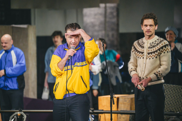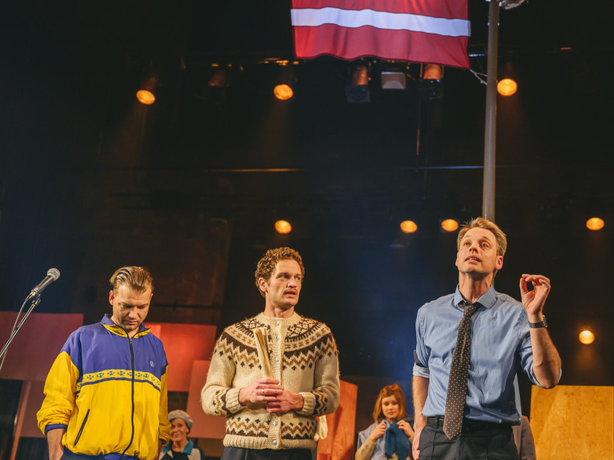Svētdienas, 3. maija, vakarā Nacionālajā teātrī tiks rādīts Artūra Dīča lugas „Baltijas teļš” iestudējums Elmāra Seņkova režijā.