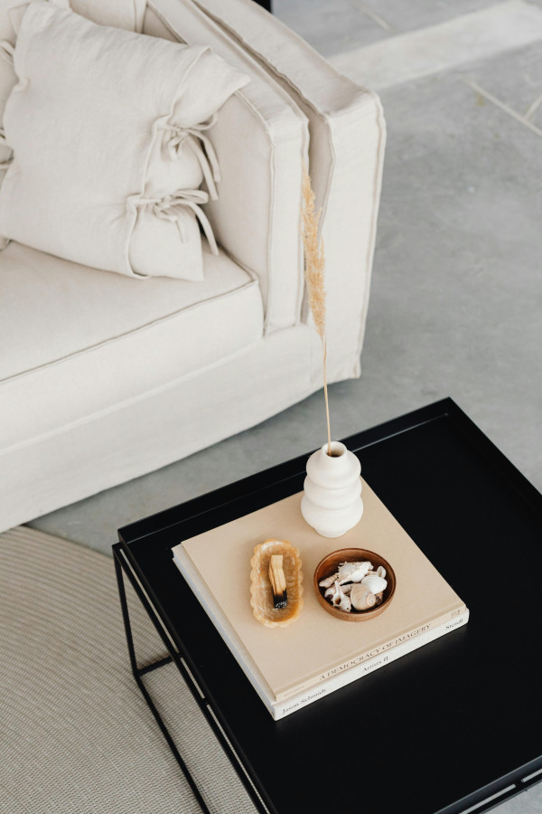 Profesionāls triks: ja galdiņš ir lielāks, grāmatas vari novietot nedaudz asimetriski, nevis tieši centrā. Tas rada dinamiku un mūsdienīgu sajūtu.