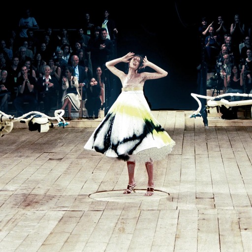 Robotus skatē bija izmantojis arī Aleksandrs Makvīns, kas izraisīja milzīgu interesi. Modelei, rotējot ap savu asi, mehāniskie roboti nopūta viņas balto kleitu ar melnu un zaļu krāsu.