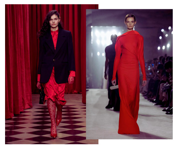 Tā nu ir sakritis, ka sarkanā ir arī viena no galvenajām krāsu tendencēm gan šogad, gan arī nākamajā gadā. Sarkanā kleita var būt jebkāda cita kombinācija - total red look, samta žakete un fliteru bikses, satīna zīmuļsvārku un žaketes komplekts, mežģīņu kleita ar apmetni, arī vakarkleita - variantu ir daudz.