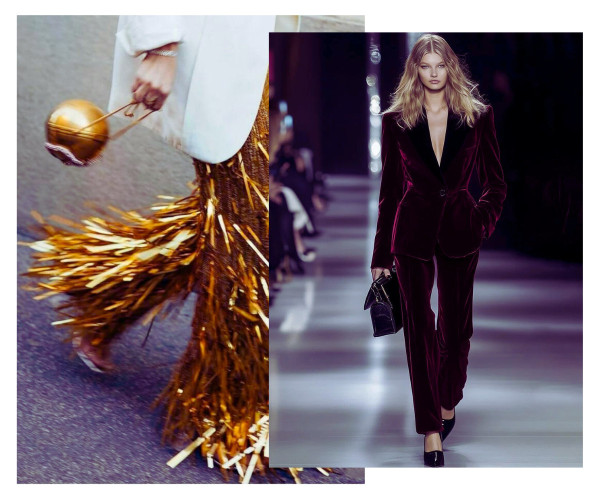 Modes aktualitātēs atgriezušās taktilās audumu īpašības, līdz ar to viss, kas rada patīkamu taustāmu izjūtu - samts no visiem materiāliem svētku vakarā varētu būt pirmajā vietā, tam seko zīds, žakards u.c.