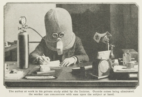 Mūsdienās varētu izdzēst sociālos tīklus vai atskaņot mūziku, lai saglabātu koncentrēšanos, bet 1925. gada jūlijā žurnāls "Science and Invention" ierosināja radikālu risinājumu: izolatora ķiveri.