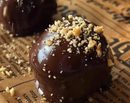 Šokolādei vajadzētu vienmērīgi izkust, pēc tam pievieno tējkaroti eļļas. Apviļā konfektes šokolādē un pārkaisa ar riekstiem.