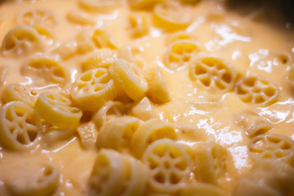Apvieno ar makaroniem - nokās makaronus un iemaisa tos karstajā siera mērcē. Ļauj 2 minūtes pastāvēt, lai garšas “savienojas”.
