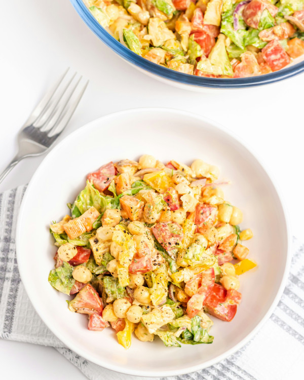 Šie salāti ir lielisks piemērs tam, kā vienā ēdienā apvienot sāta sajūtu, uzturvērtību un vienkāršu pagatavošanu. Turku zirņi nodrošina ilgstošu enerģiju un olbaltumvielas, svaigie dārzeņi piešķir kraukšķīgumu un vitamīnus, bet vista un siers padara salātus īpaši piemērotus pat kā pilnvērtīgu maltīti pusdienām vai vakariņām! Mērci iespējams pielāgot gaumei – izvēloties klasisko majonēzi vai vieglāku variantu ar grieķu jogurtu. Ar recepti dalās “BBC Food”.