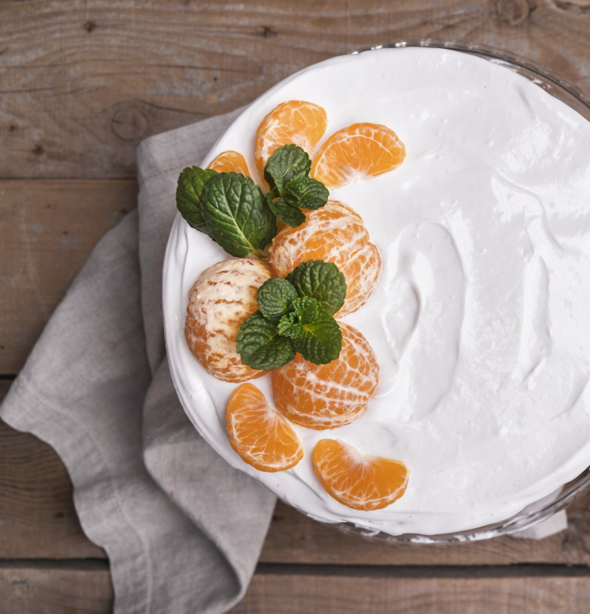 Maiga kūka bez cepšanas ar biezpienu un mandarīniem, atsvaidzinoša un svētku noskaņās.