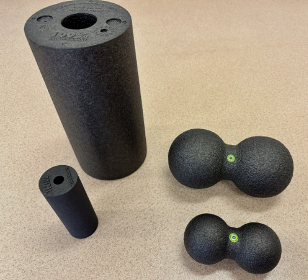1.Sēdus ar bumbiņu. Ērti apsēžas, kājas gurnu platumā, pēdas stabili. Paņem bumbiņu un novieto krūšu daļas zonā uz sāpīgā punkta izmantojot šķērsberzi (veic uzspiedienu un virza sāniski muskuļa šķiedrām), apļveida masāžu, saspiešanu (veic uzspiedienu sāpīgajā vietā, tad atslābina), saspiest un pagriezt (veic uzspiedienu un bumbiņu pagriež uz vienu un otru pusi uzspiediena laikā), saspiest un sakratīt (veic uzspiedienu un ātru spiedienu un nelielu atslābināšanu), veic pašmasāžu.