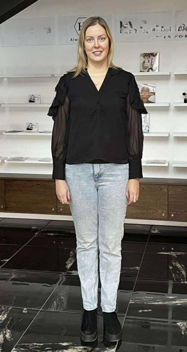 Elīnas (34 gadi) pārvērtībās matu sakārtojumu veidoja Marina Galdika.