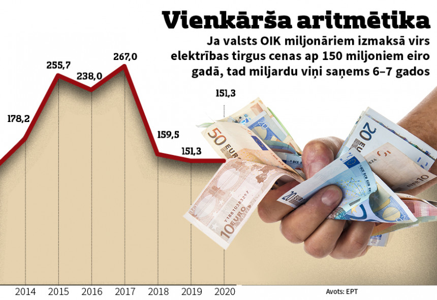 Another imitation of action in the execution of the MoE is to hide OIK payments under electricity supply payments. The MoE informs that “it has developed a scenario for the gradual reduction of the OIK, which envisages directing the dividends of the Latvenergo group (and the corporate income tax related to their disbursement) to the gradual reduction of the OIK in the coming years.” In other words, the increase in Latvenergo's tariffs corresponds to the decrease in OIK, as these tariffs are a source of money that the state receives in the form of dividends and then returns to private entrepreneurs. Such a maneuver is not new either, but a method that has already been tested for the election of the 13th Saeima, which the ruling parties also want to use for the 14th Saeima elections.