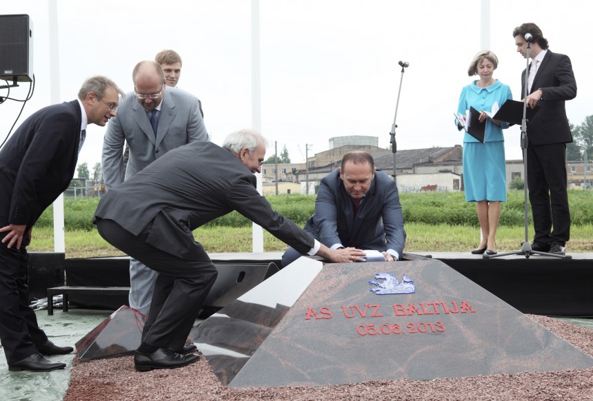 Nākamās vagonu ražotnes pamatakmens tika iemūrēts 2013. gada 5. jūnijā. "UVZ Baltija" ir Krievijas metālrūpniecības un mašīnbūves nozares pētniecības, ražošanas un loģistikas giganta “Uralvagonzavod” struktūras „UVZ International S.a.r.l.” meitas uzņēmums. 1936.gadā dibinātais "Uralvagonzavod", kura 100% akciju pieder Krievijas valsts īpašumu federālajai pārvaldes aģentūrai "Rosimuščestvo", aptver ražošanas uzņēmumus, zinātniski pētnieciskos institūtus un konstruktoru birojus. "Uralvagonzavod" būvē vilcienu vagonus, ceļu būves mašīnas un kara tehniku. 2012.gadā “UVZ Baltija” pēc apmaksātā pamatkapitāla apjoma bija otrs lielākais reģistrētais uzņēmums Latvijā. Kopumā „UVZ Baltija” plāno investēt aptuveni 20 miljonus eiro, kas ietver gan rūpnīcas būvniecības izmaksas, gan iekārtu un tehnoloģiju iegādi. Investīciju mērķis ir mūsdienīgas ražotnes izveide, kas spēj nodrošināt augstvērtīgas produkcijas izgatavošanu.