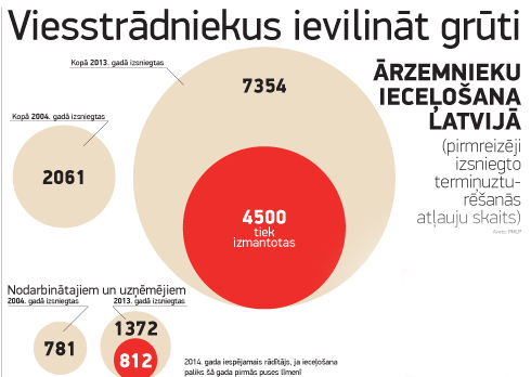 PMLP ir vadošā iestāde, kurai uzdots sacerēt tieši uz viesstrādniekiem mērķētu imigrācijas koncepciju, taču iestāde ar šo uzdevumu galā netiek. Uzdevums patiešām grūts, jo Latvija ir kopumā nepievilcīga valsts nodarbinātajiem. PMLP šā gada pirmajā pusē saistībā ar nodarbinātību izsniegusi 406 pirmreizējās termiņuzturēšanās atļaujas, kas izrādās mazāk nekā citos gados.