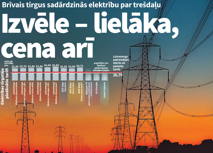 Elektroenerģijas tirgu mājsaimniecībām iecerēts atvērt nākamā gada 1. janvārī, un jau šobrīd mājsaimniecības var sākt apsvērt, no kura elektrības piegādātāja pirkt elektrību pēc Jaungada. Lai gan pašlaik sevi tirgū ir pieteikuši seši elektrības tirgotāji, būtiskas atšķirības starp to piedāvājumiem nav, taču jebkurā gadījumā ģimenēm jārēķinās, ka maksa par elektrību pieaugs aptuveni par trešdaļu.