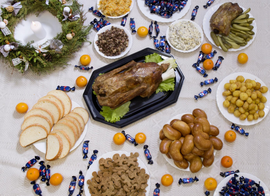 Latvijā Ziemassvētki nav iedomājami bez mandarīniem, speķa pīrādziņiem un štovētiem kāpostiem, liecina veikalu tīkla Maxima aptauja. Mandarīnus kā iecienītāko Ziemassvētku ēdienu atzīmējusi katra otrā ģimene, speķa pīrādziņus, štovētus kāpostus, piparkūkas, rasolu, cepešus - katra trešā ģimene. Kādreiz tik populāros pelēkos zirņus ar speķi kā Ziemassvētku mielasta galveno ēdienu izvēlas 29 procenti, siļķi kažokā - 19 procentu. Savukārt cūkas šņukuru kā iecienītāko ēdienu atzīmējuši tikai divi procenti iedzīvotāju. Saskaņā ar aptaujas rezultātiem lielākā daļa iedzīvotāju svētku maltīti gatavos paši pēc tradicionālām un pārmantotām ģimenes receptēm un tikai trīs procenti galdu klās ar veikalā iegādātiem gataviem ēdieniem.