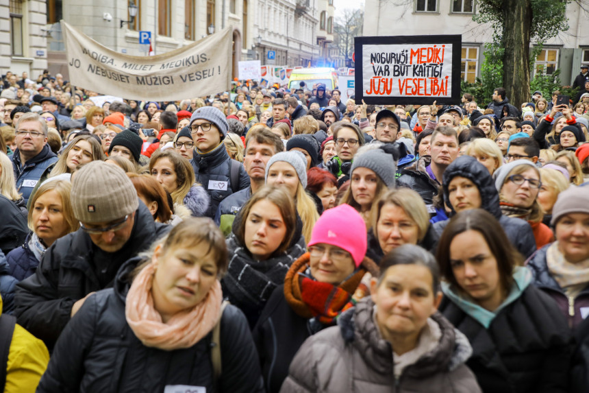 Veselības aprūpes jomas darbinieki pauž neapmierinātību, ka 2020.gadā mediķu atalgojuma pieaugumam sākotnēji tika solīti 120 miljoni eiro, kas ļautu palielināt algas par 20%, bet līdz šim valdība tam iezīmējusi ap 60 miljonus eiro. Tāpat mediķi iebilst tam, ka 2022.gadā valsts veselības aprūpes finansējumam tiks atvēlēti vien 3,3% no prognozētā iekšzemes kopprodukta, skaidrojušas mediķus pārstāvošās organizācijas. Salīdzinājumam - atbilstoši Veselības ministrijas sniegtajai informācijai, valsts budžeta izdevumi veselības aprūpes nozares finansējumam 2019.gadā ir 3,9% no IKP. Vidēji Eiropas Savienībā (ES) valsts veselības aprūpei atvēl 7% no IKP, bet Lietuvā un Igaunijā - vairāk par 5% no IKP.