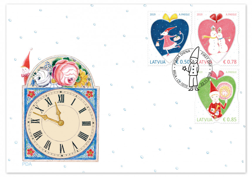 Gada nogales svētku gaidīšanas laikā Latvijas Pasts izdod trīs jaunas pastmarkas sērijā Ziemassvētki, lai ikviens iedzīvotājs jau laikus varētu nosūtīt siltus sveicienus Ziemassvētkos un Jaunajā gadā. Pastmarku pirmās dienas zīmogošana paredzēta piektdien, 2019.gada 22.novembrī, Rīgas 10.pasta nodaļā Elizabetes ielā 41/43 no plkst.8 līdz 20.