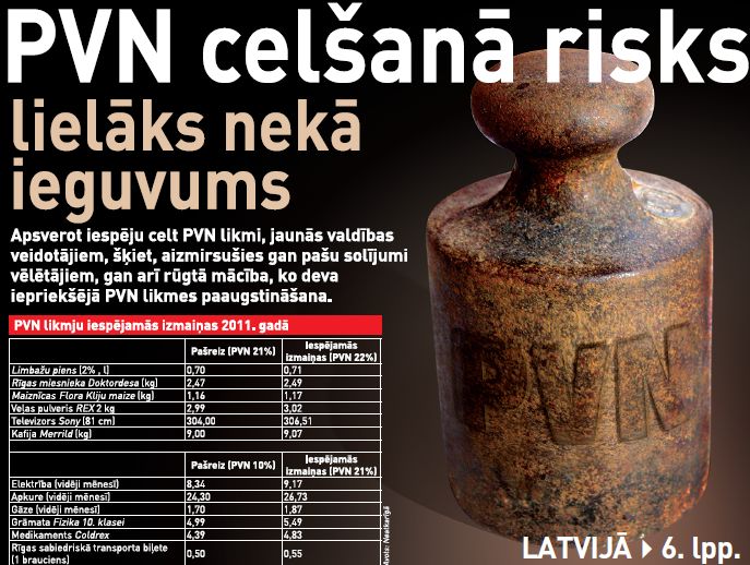 – Valdības iespējamais lēmums par PVN un nekustamā īpašuma nodokļa likmju vienlaicīgu palielināšanu būs kārtējais sitiens pašmāju ražotājiem. Nodokļu celšana ir vieglākais izvēles ceļš, ko diktē vēlme pēc tūlītēja efekta valsts budžetā. Nopietnāks solis budžeta konsolidācijai – strukturālas reformas, par kurām jau ilgstoši tiek runāts, kuras pieprasa arī starptautiskie aizdevēji, taču praksē tās tiek īstenotas tiktāl, lai var ievilkt ķeksīti atskaitēs.