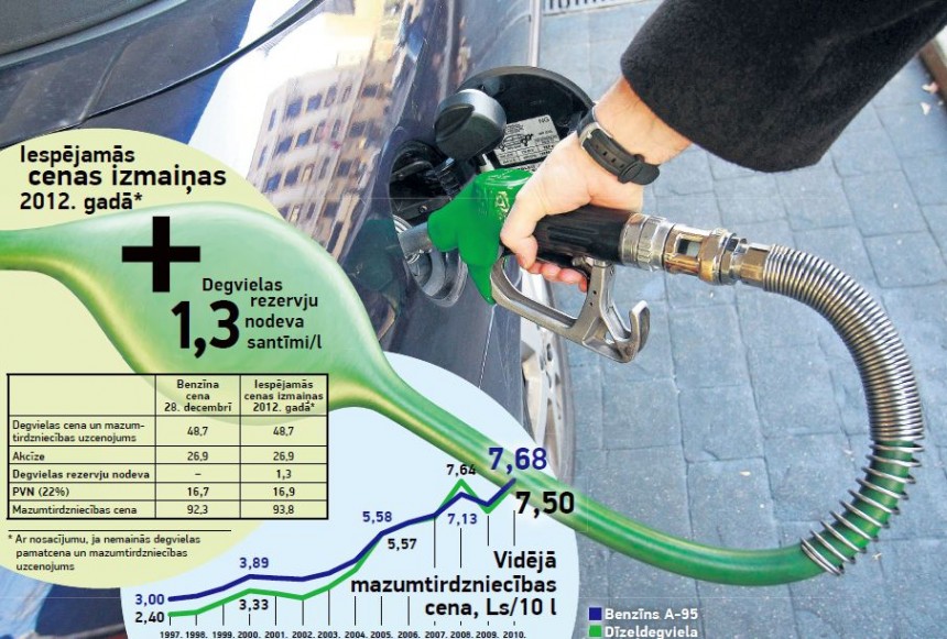 Saskaņā ar valdības gribu valsts nodeva būs 17,33 lati par katru iepriekšējā mēnesī realizēto degvielas tonnu pirmās kategorijas naftas produktiem. Komersantiem šo nodevu būs jāsāk maksāt 2012. gada februārī par janvārī realizētā benzīna apjomu. Ekonomikas ministrija (EM), kas izstrādāja attiecīgo noteikumu projektu, jau pašlaik atzīst, ka komersanti, kam būs pienākums maksāt valsts nodevu par drošības rezervju uzturēšanu, savus izdevumus kompensēs, palielinot degvielas cenu. Pēc EM aplēsēm, benzīna cena varētu palielināties par 0,0133 latiem litrā, savukārt dīzeļdegvielas cena samazināties par 0,2 santīmiem litrā.