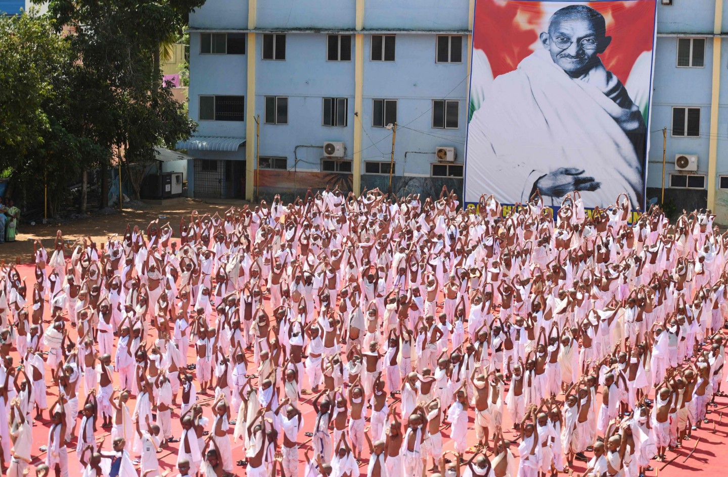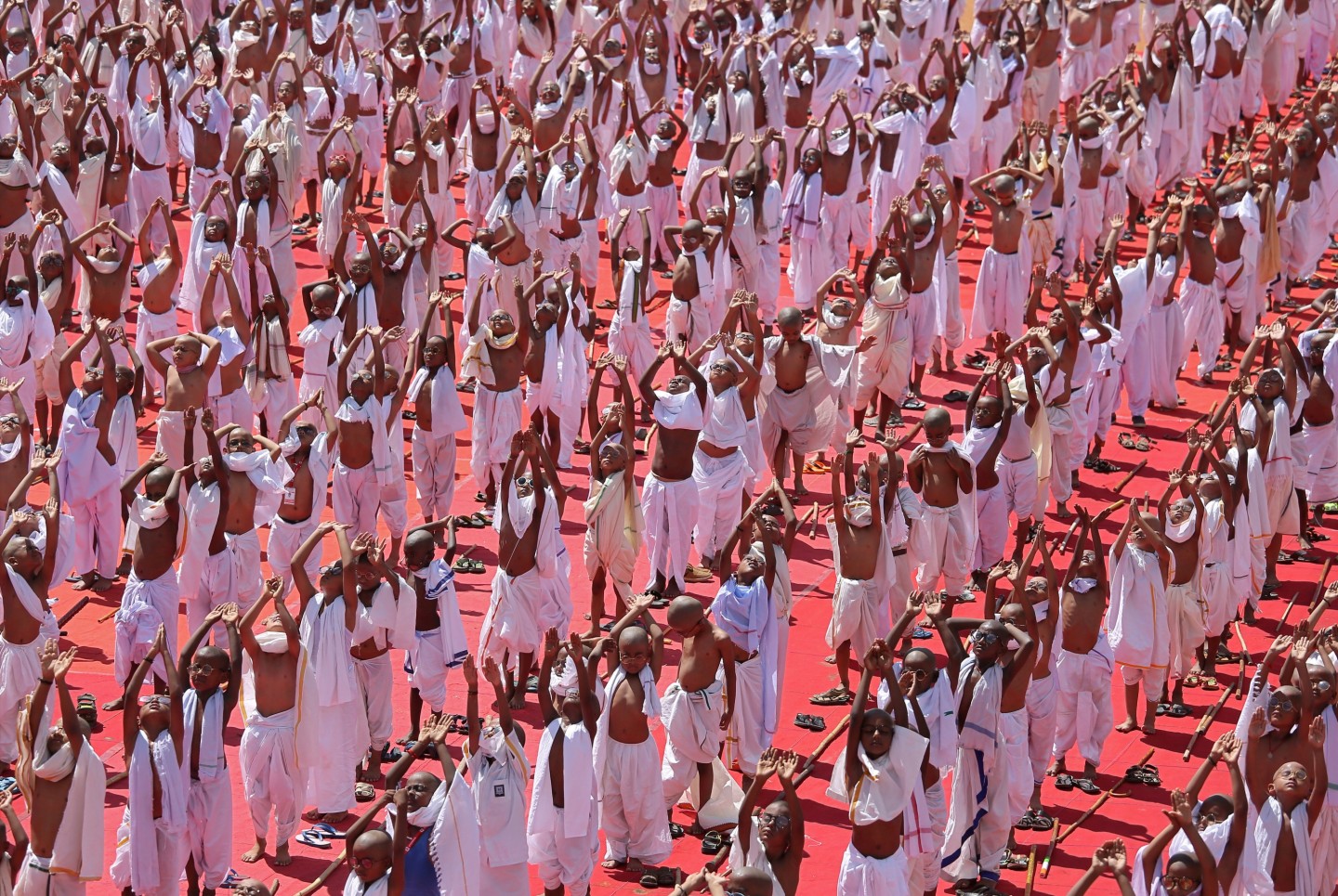 Simtiem cilvēku piedalās jogas nodarbībā Indijā