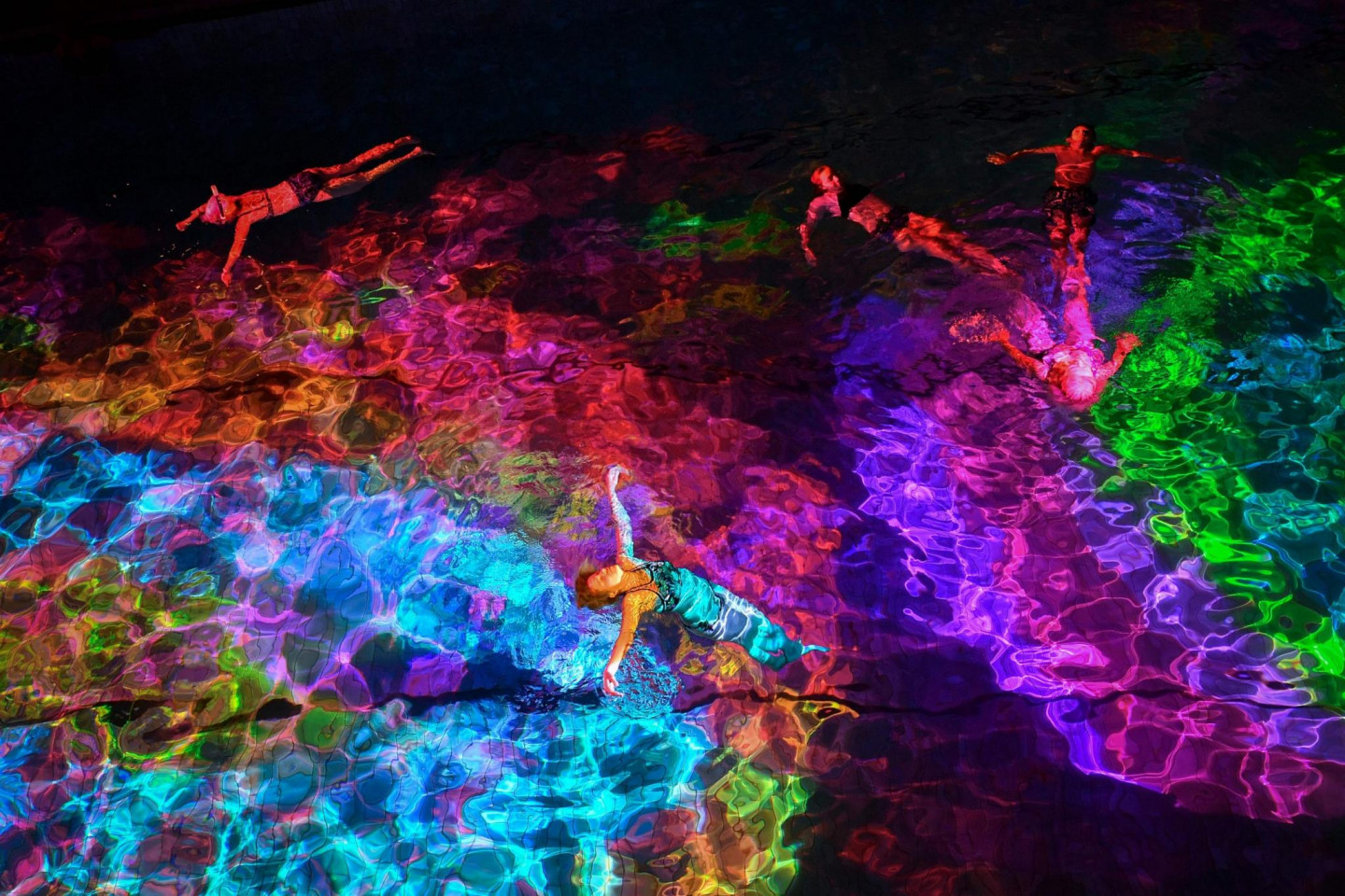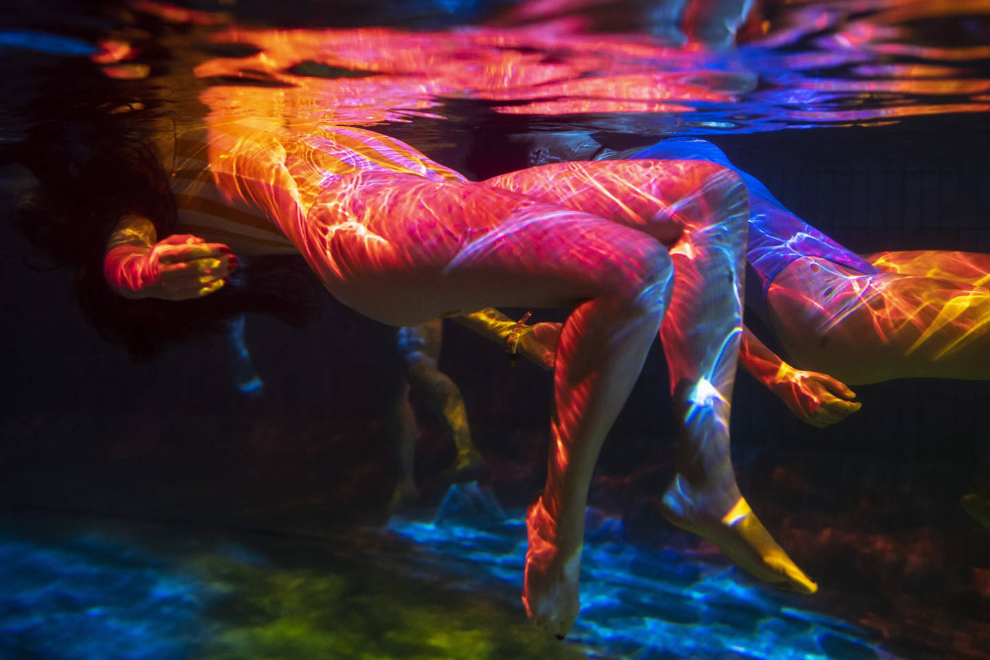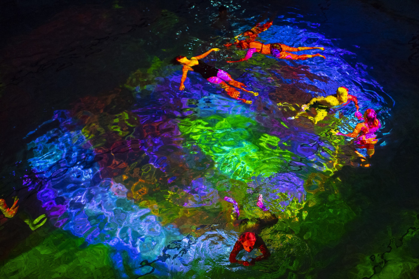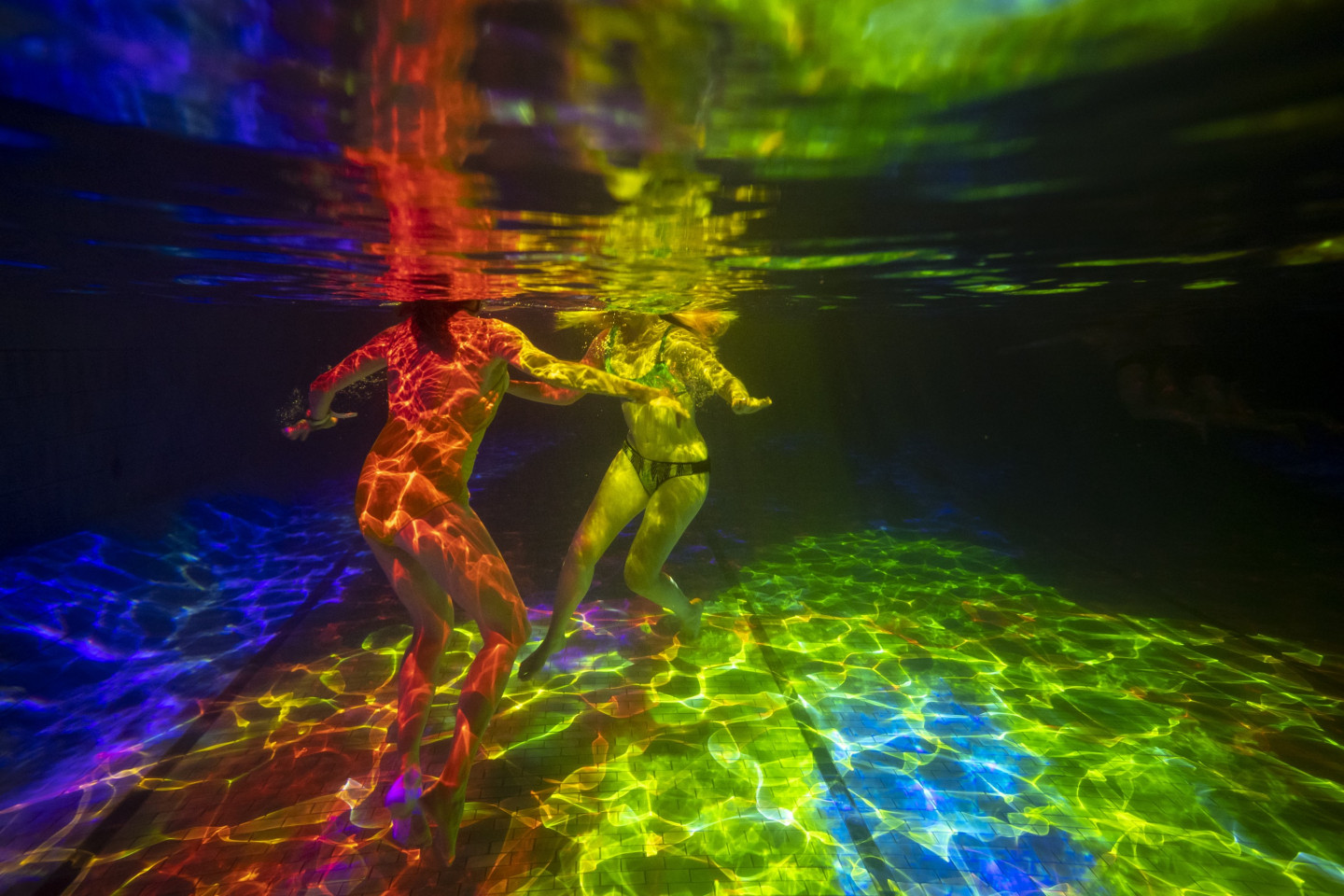 Šveices vizuālais mākslinieks Pipiloti Rists no gaismām radījis koraļļu rifa instalāciju publiskajā peldbaseinā Bernes pilsētā.