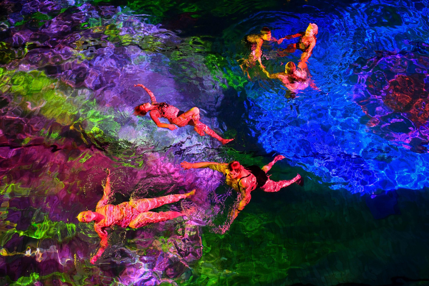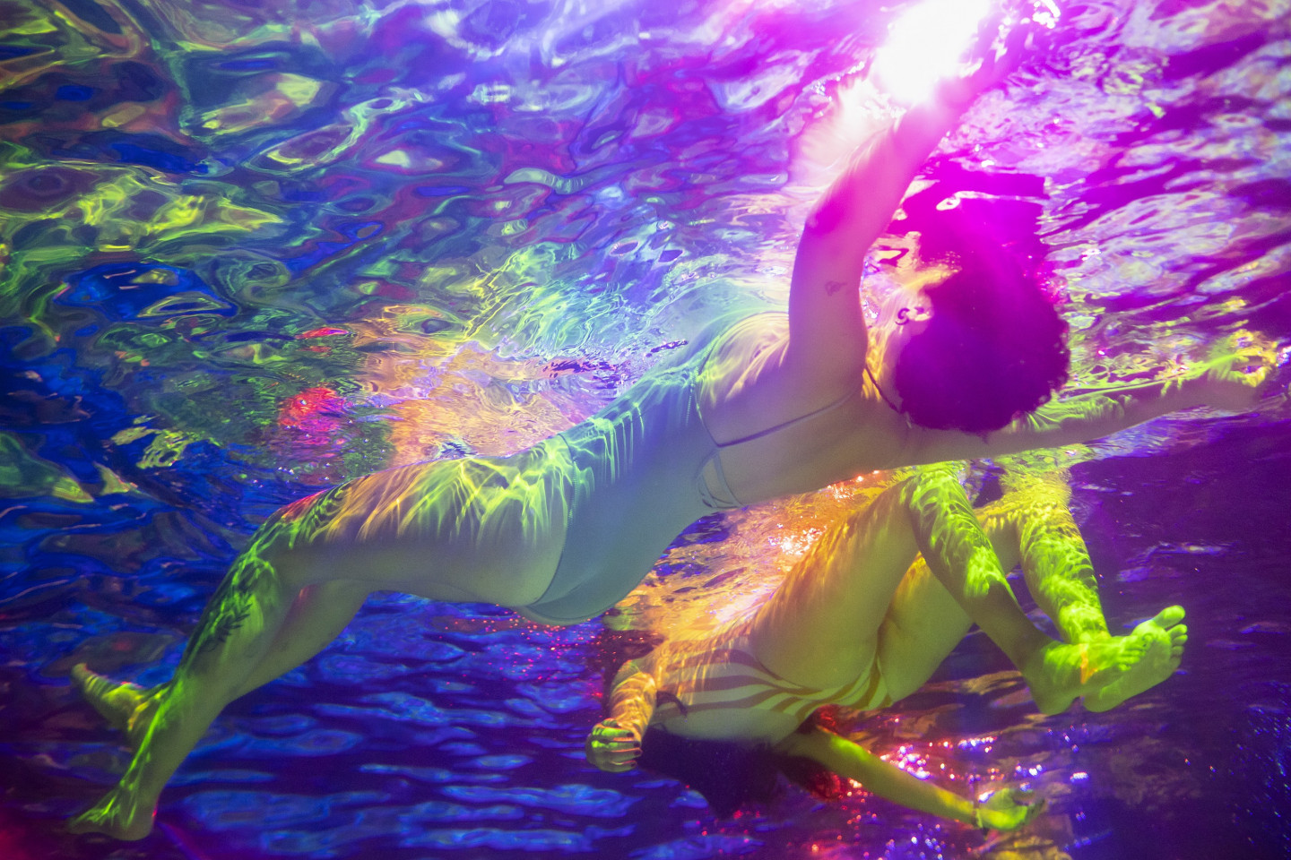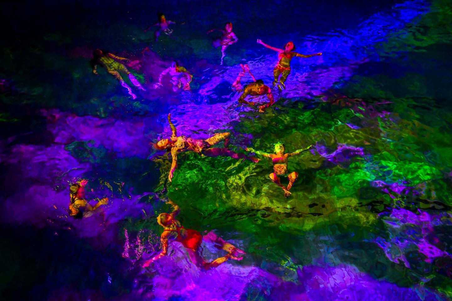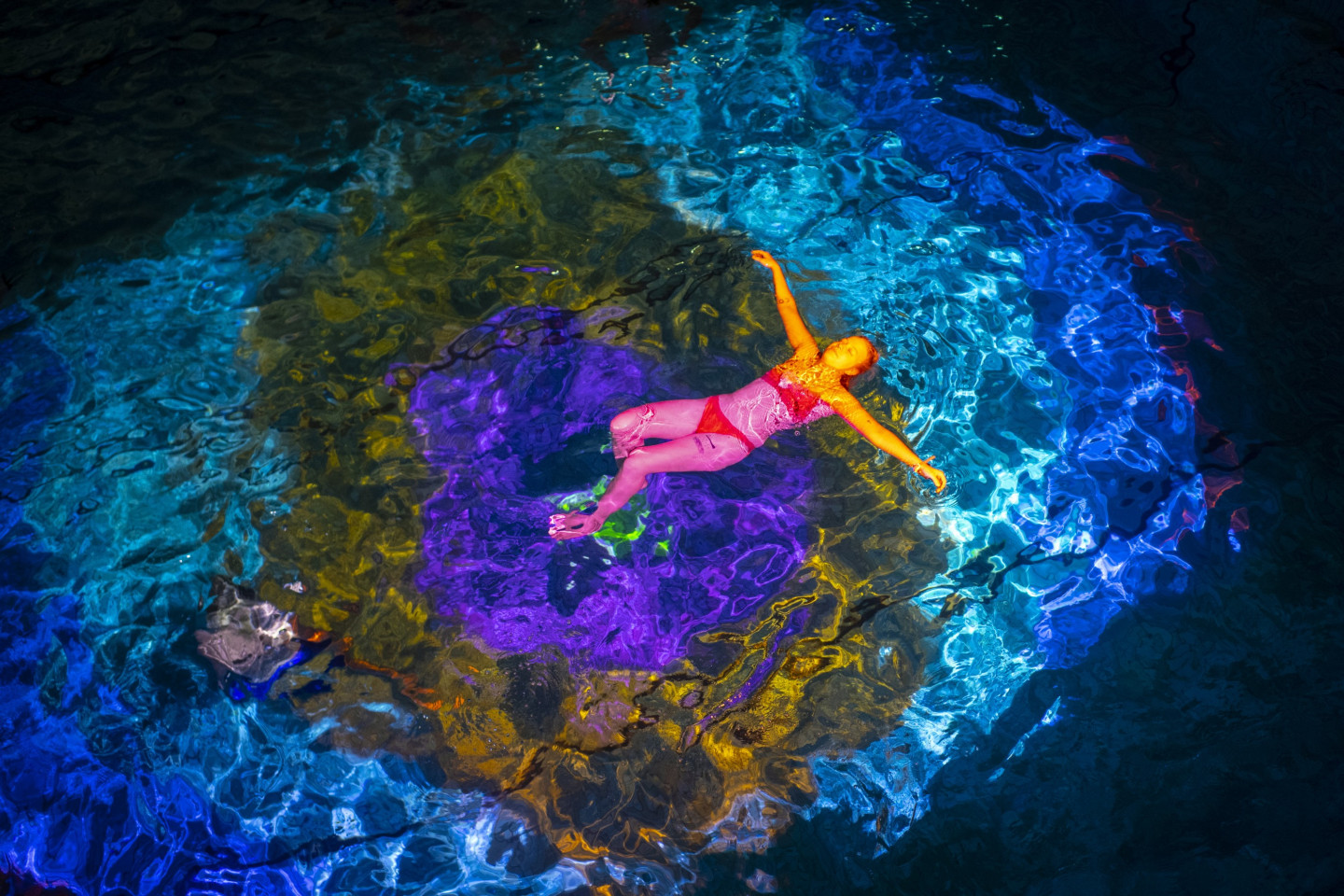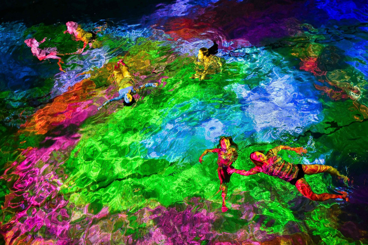 Šveices vizuālais mākslinieks Pipiloti Rists no gaismām radījis koraļļu rifa instalāciju publiskajā peldbaseinā Bernes pilsētā.