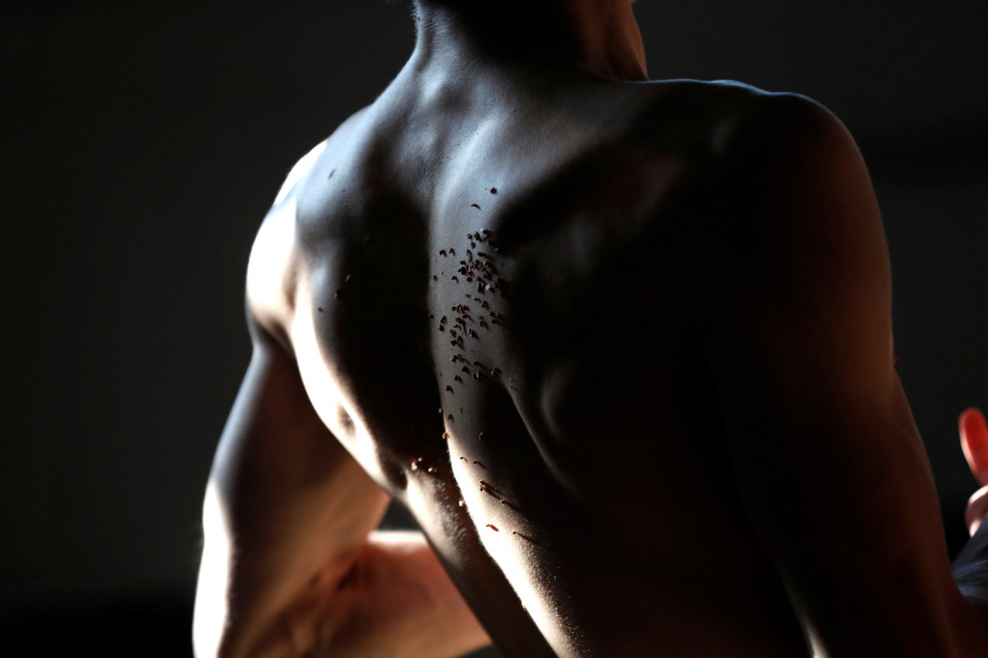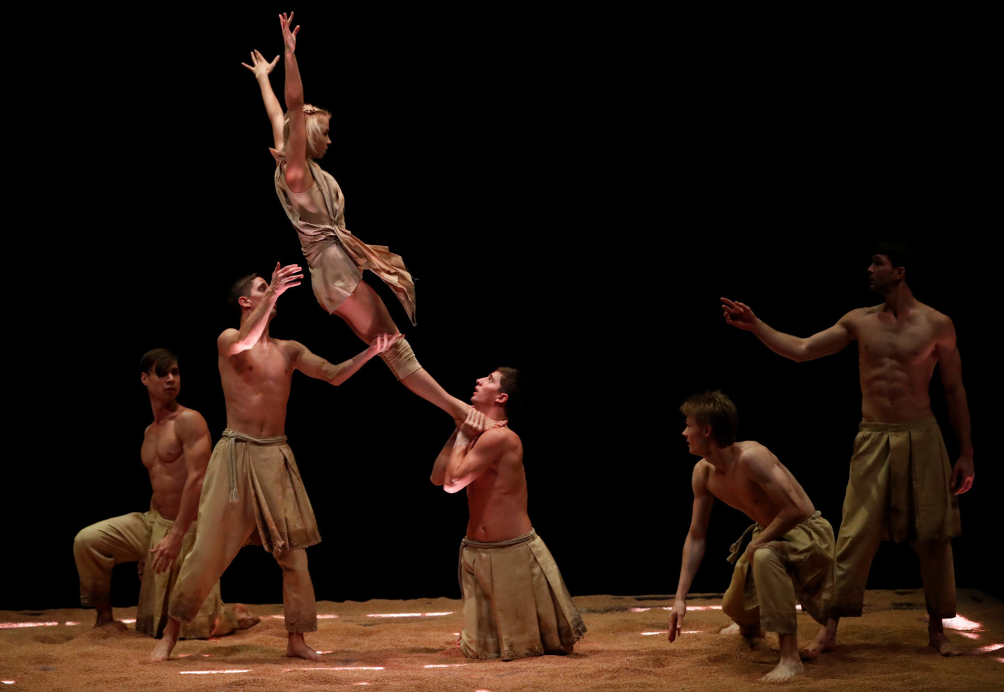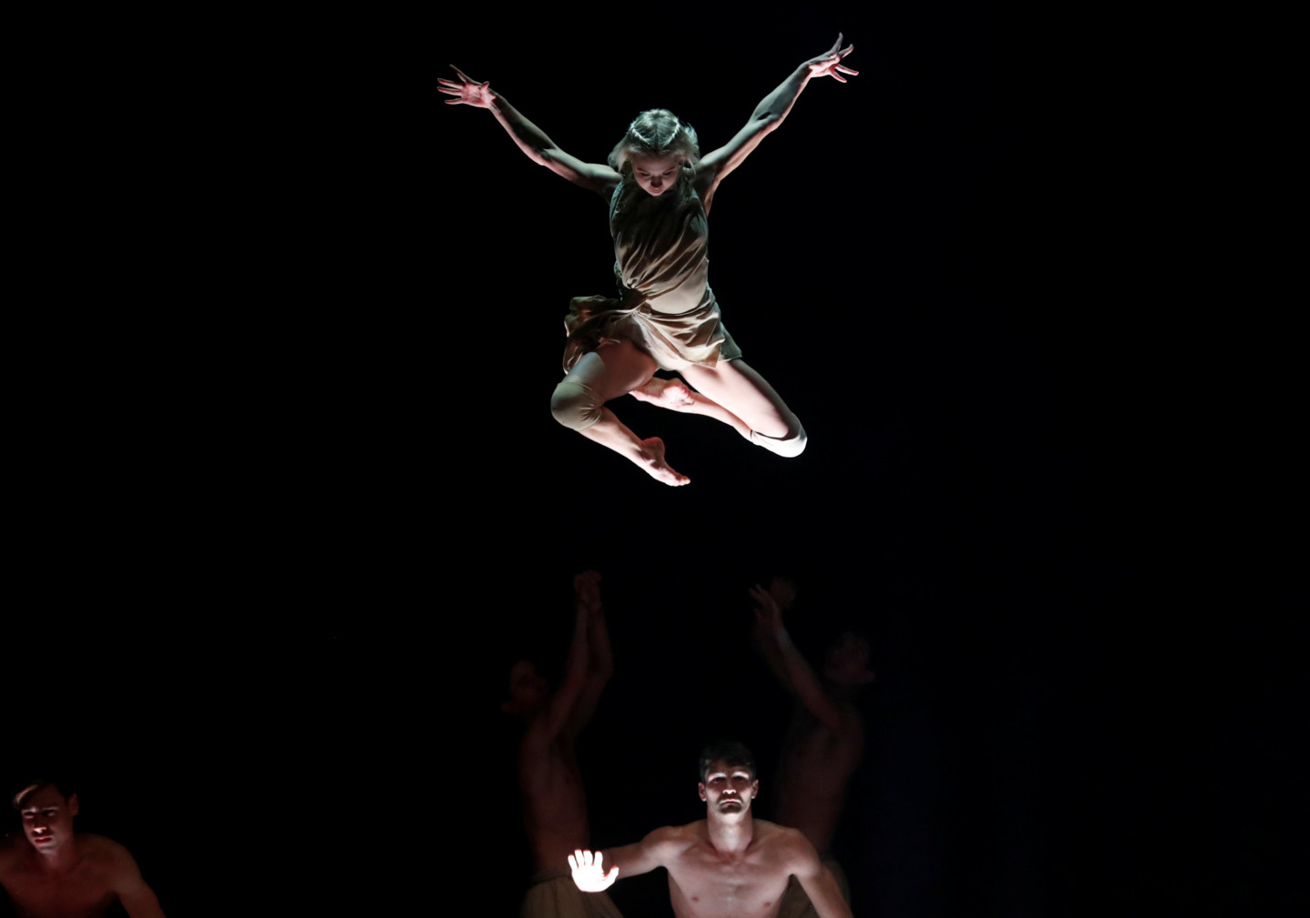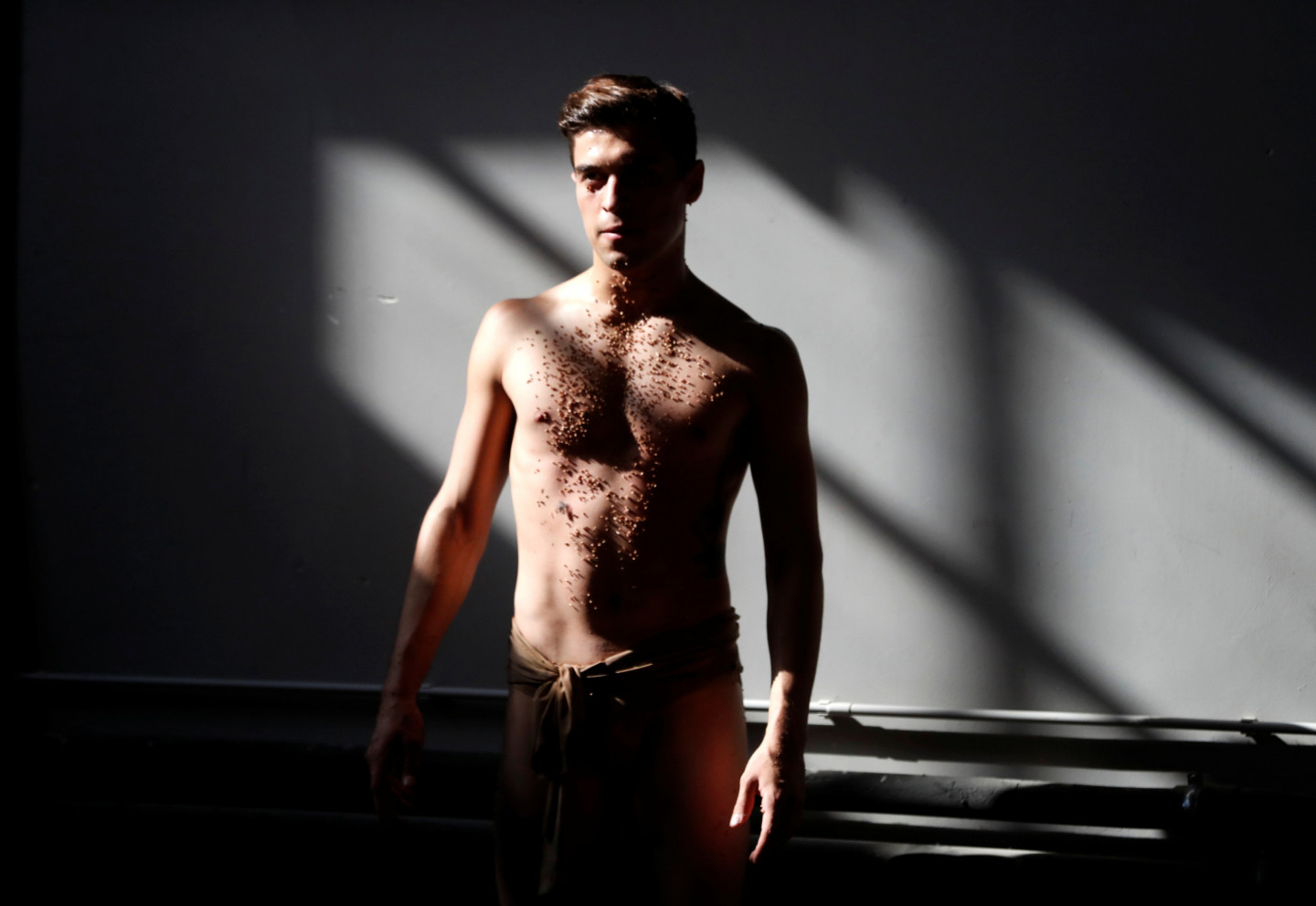 Fotogrāfam izdevies iemūžināt, kā gaidāmajam koncertam gatavojas kompānijas "Recirquel" dejotāji.
