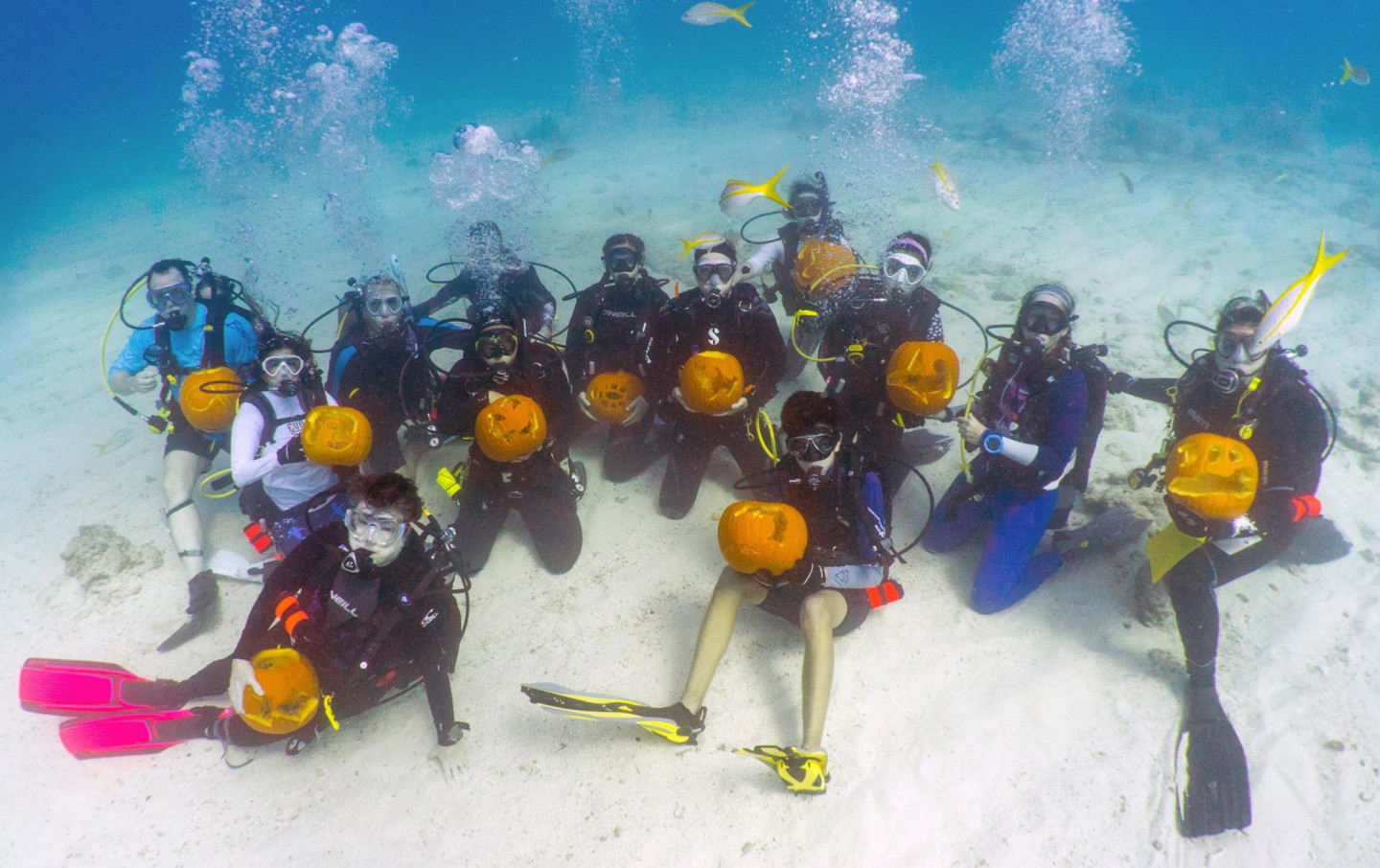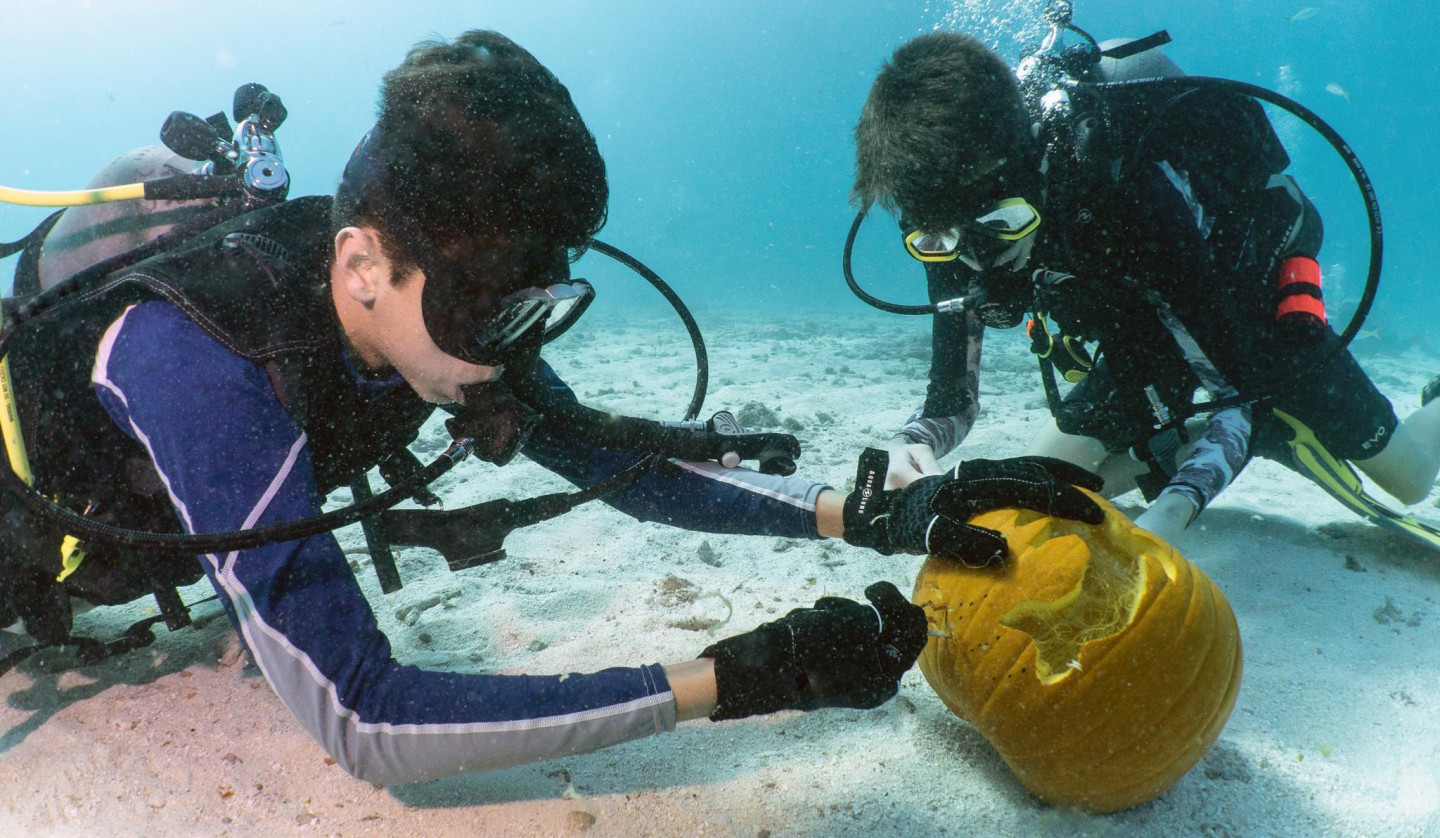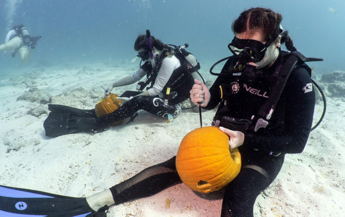 Neparasts konkurss noticis Floridā, kur cilvēki sacentušies ķirbju grebšanā zem ūdens.