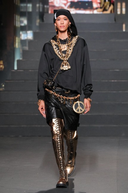 Vakar, 24.oktobrī, Parisa Džeksone (Paris Jackson), Fransisa Bīna Kobeina (Frances Bean Cobain) un Mails Ričijs (Miles Richie) bija enerģiskās MOSCHINO [tv] H&M skates un noslēguma ballītes viesu vidū. H&M un MOSCHINO Radošais direktors Džeremijs Skots (Jeremy Scott) ielūdza slavenību, starptautisku redaktoru un modes noteicēju auditoriju uz modes skati, kur mēle bija izgaismota ar reklāmas izkārtnēm gluži kā Taimskvērs Ņujorkā.