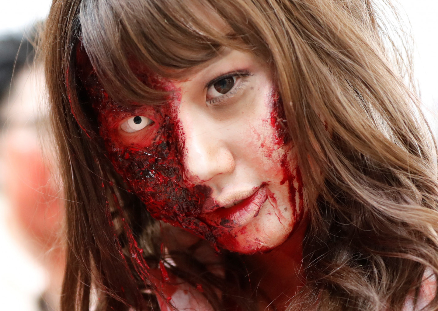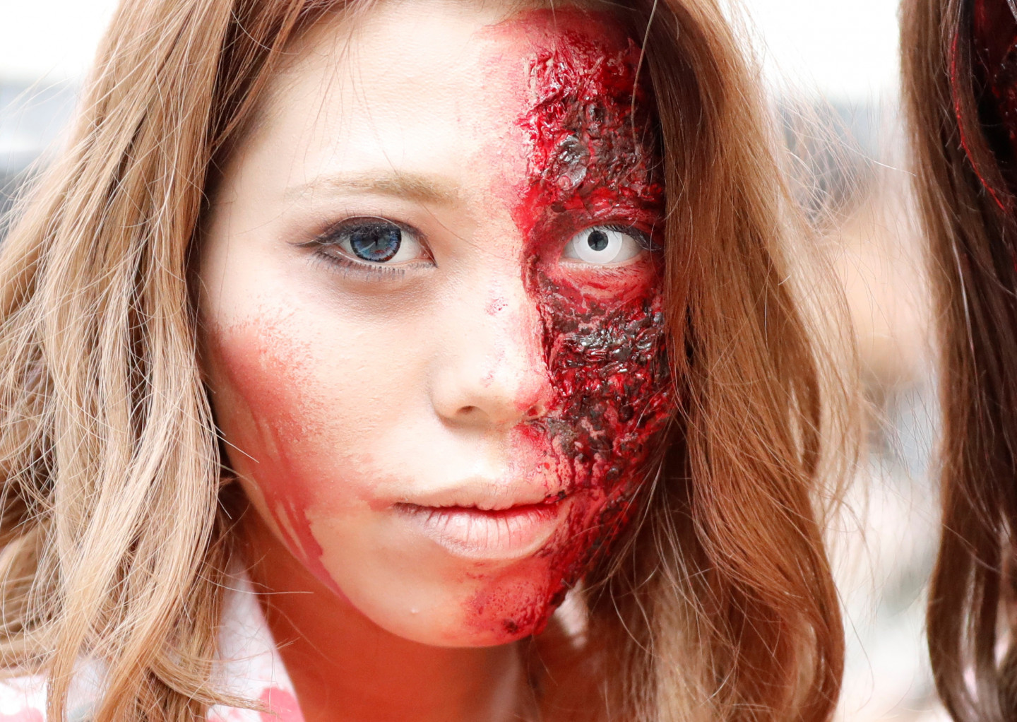 Šajā nedēļas nogalē Japānā notikusi fotosesija, kurā iemūžināts, kādus tēlus iespējams radīt par godu Halovīnam.
