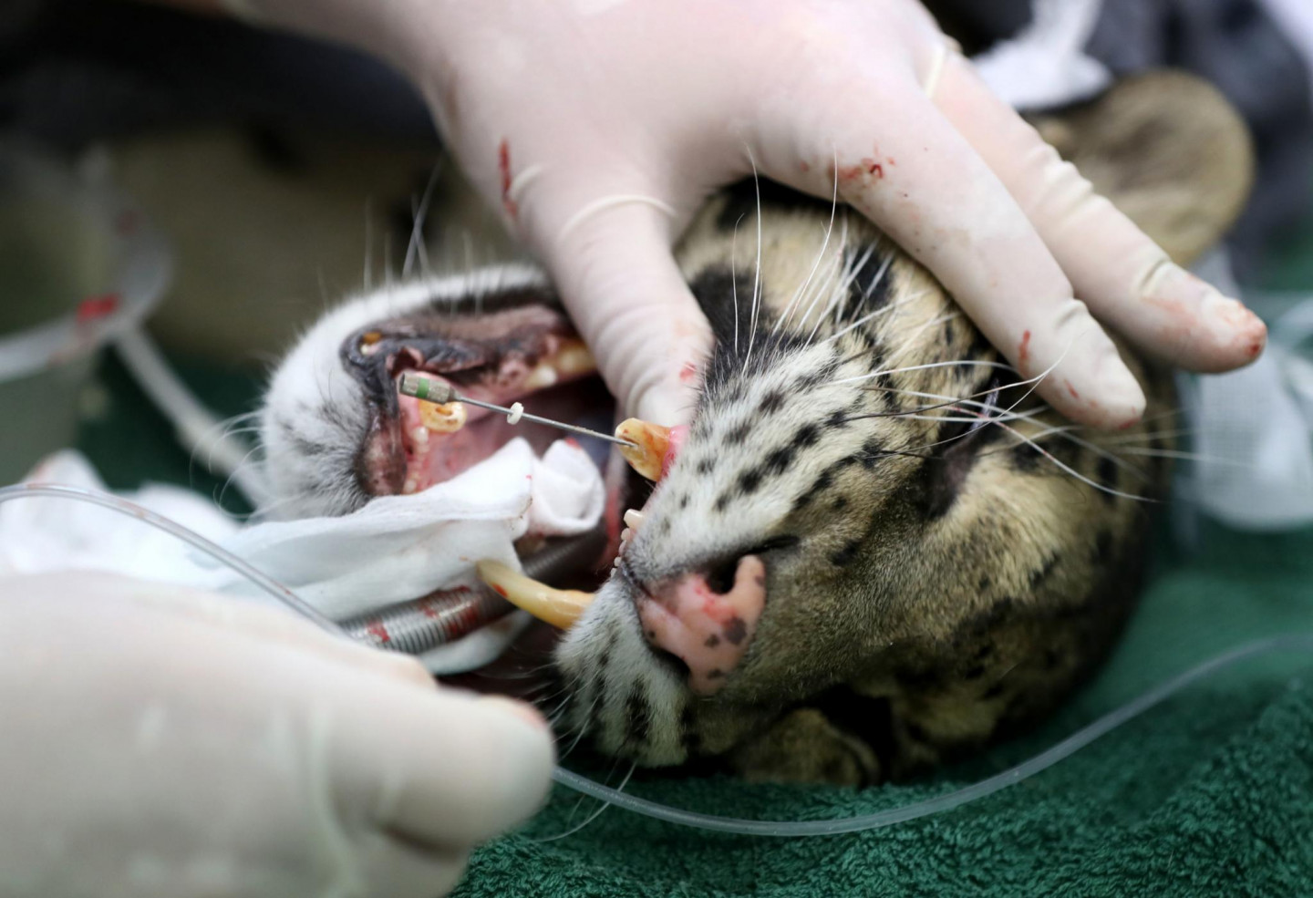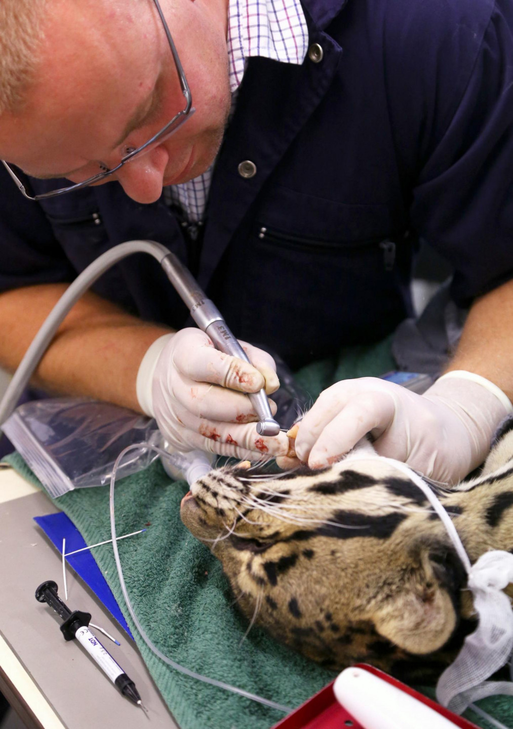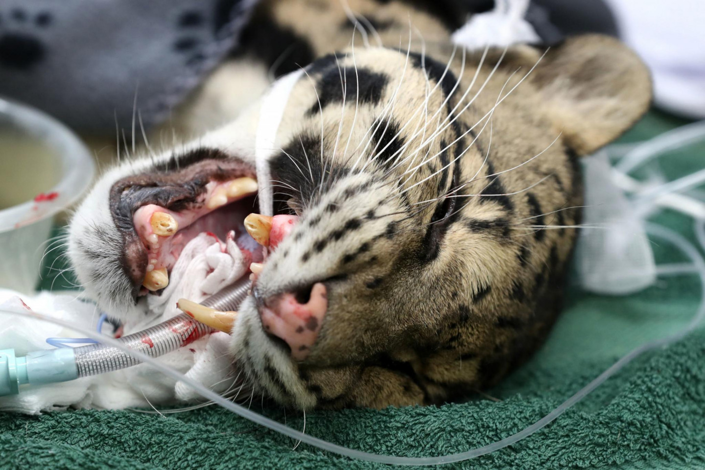 ASV, Kentā, zobārsta palīdzība bijusi nepieciešama 13 gadus vecam leopardam, kuram vajadzējis atjaunot 4 zobus.