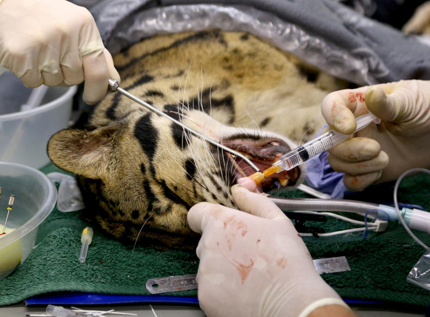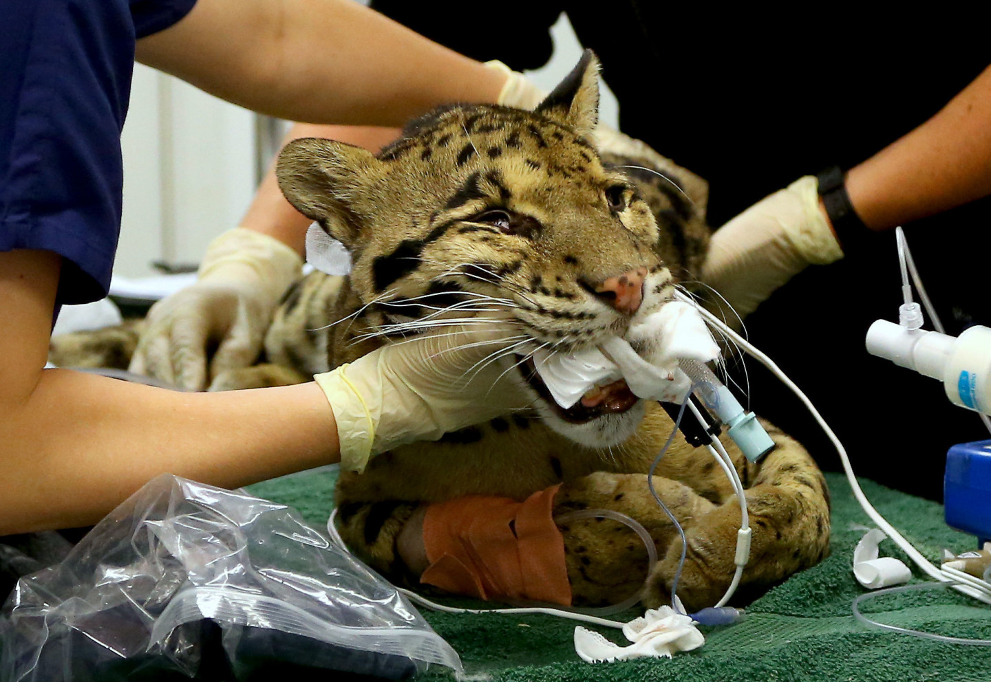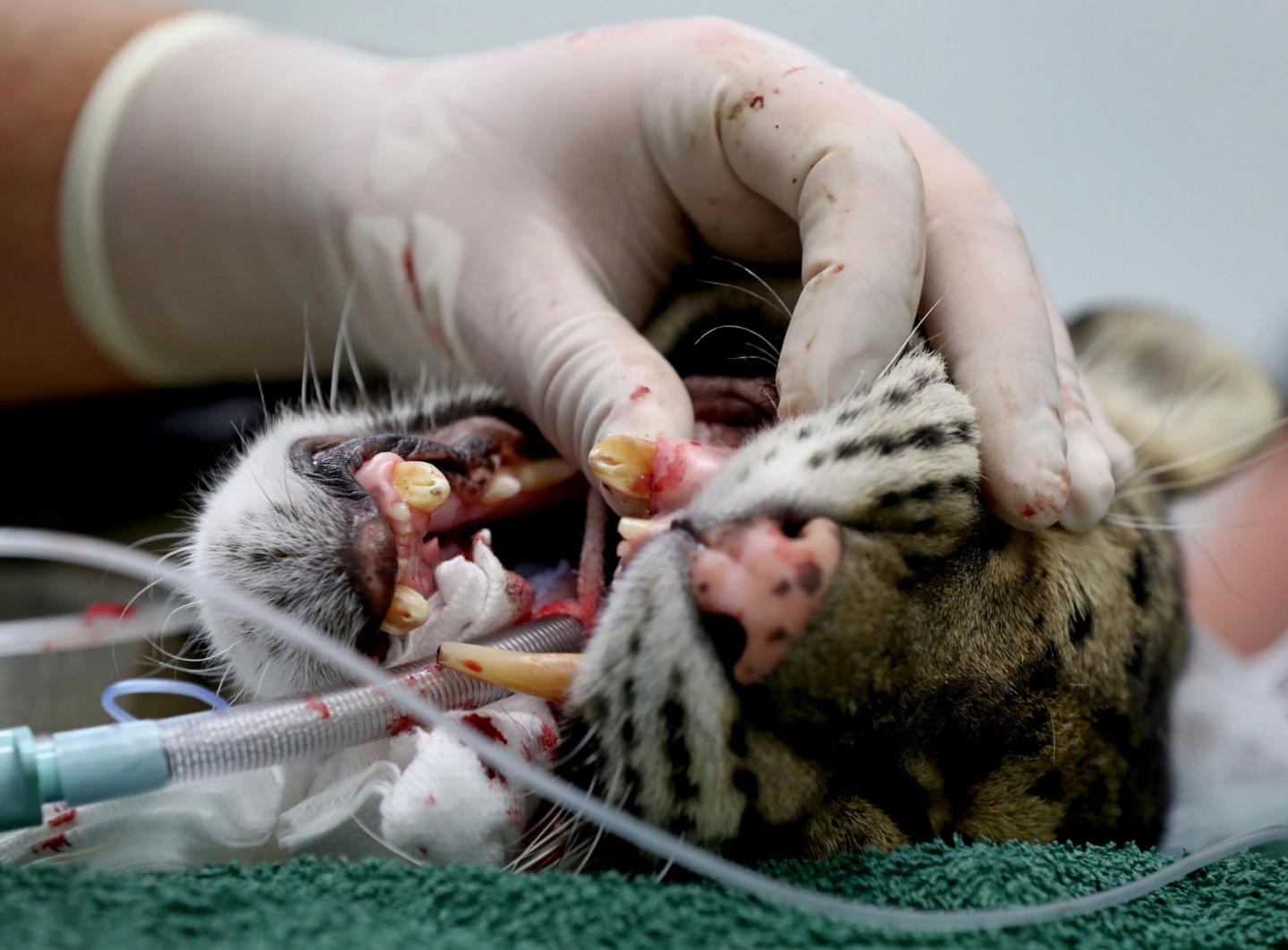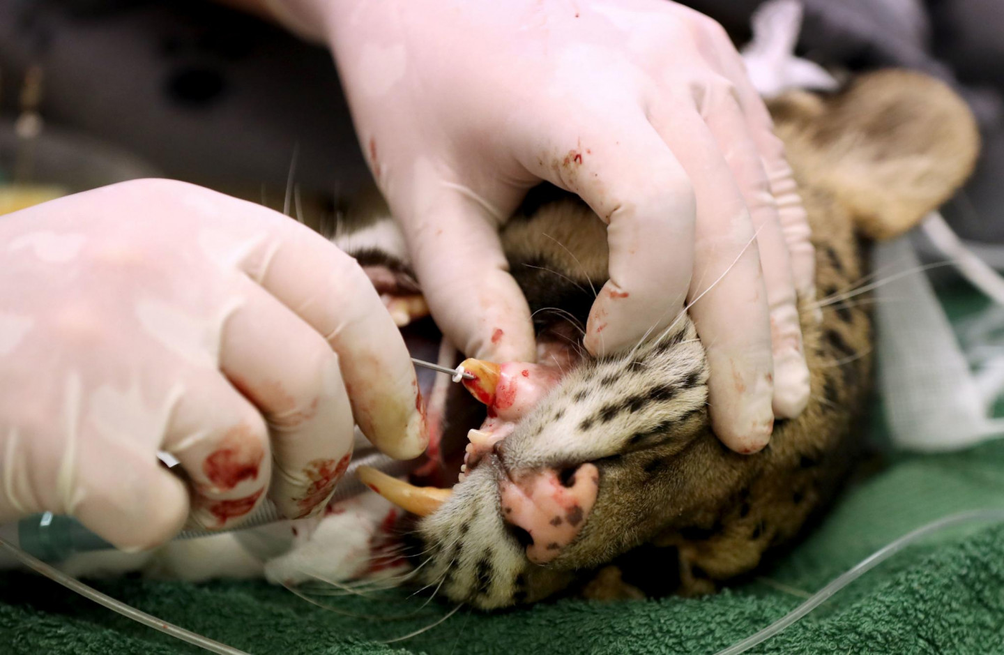 ASV, Kentā, zobārsta palīdzība bijusi nepieciešama 13 gadus vecam leopardam, kuram vajadzējis atjaunot 4 zobus.