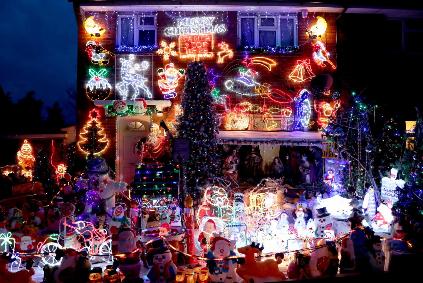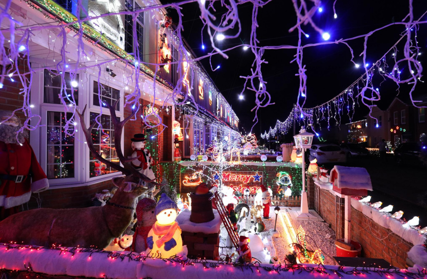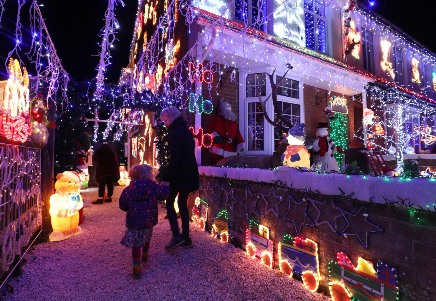 Saseksā, Anglijā, iemūžināts, kā izskatās kāda ģimenes māja, kas izrotāta Ziemassvētkiem.